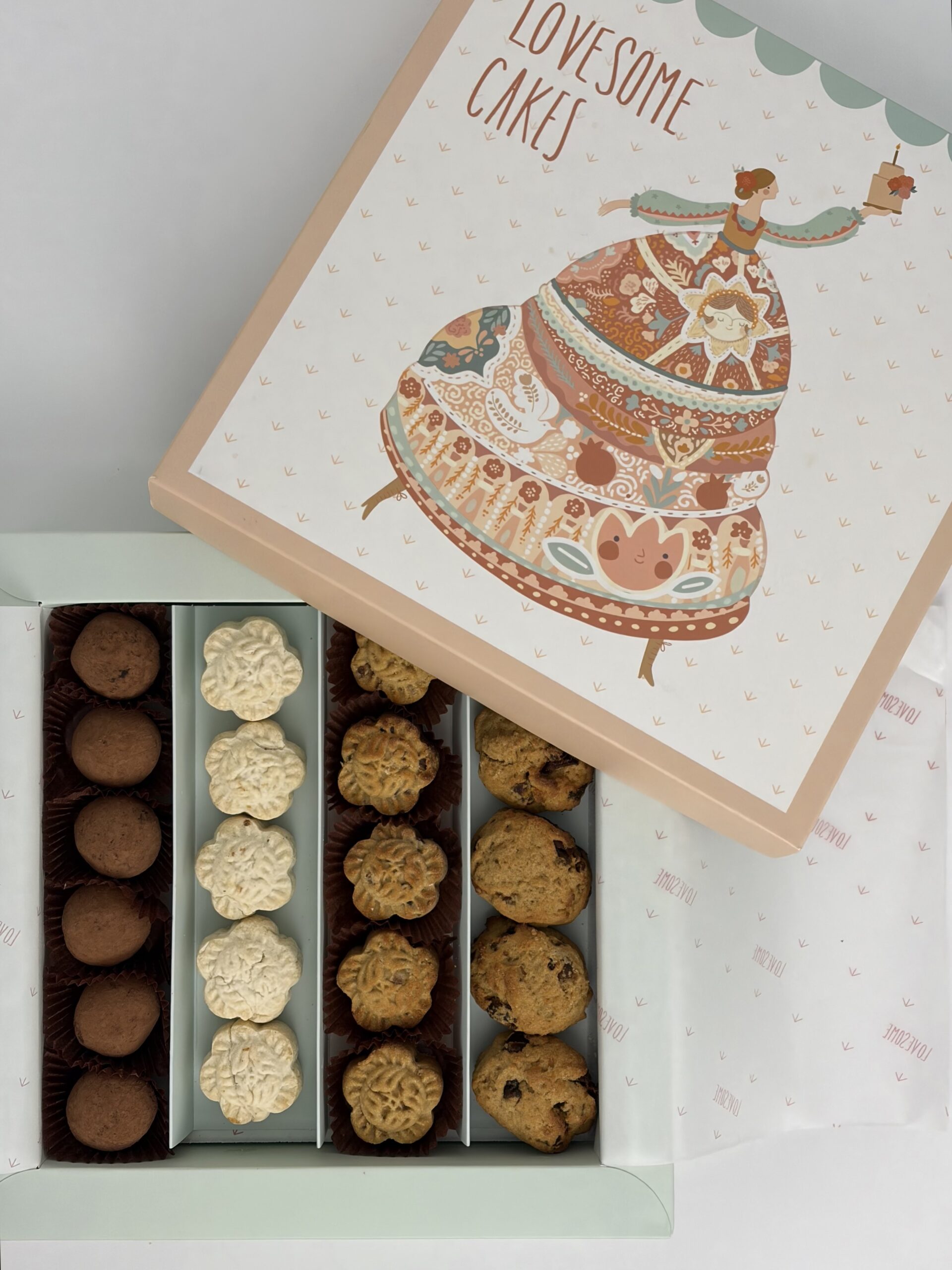 This box includes four varieties of sugar-free cookies, all sweetened with dates: